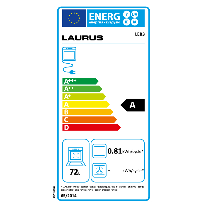 Energieeffizienzklasse. Spektren: Geschirrspüler, Kühl-/Gefrierschränke, Backöfen, Herde und Dunstabzüge A+++ - D, Leuchtmittel A++ - E.