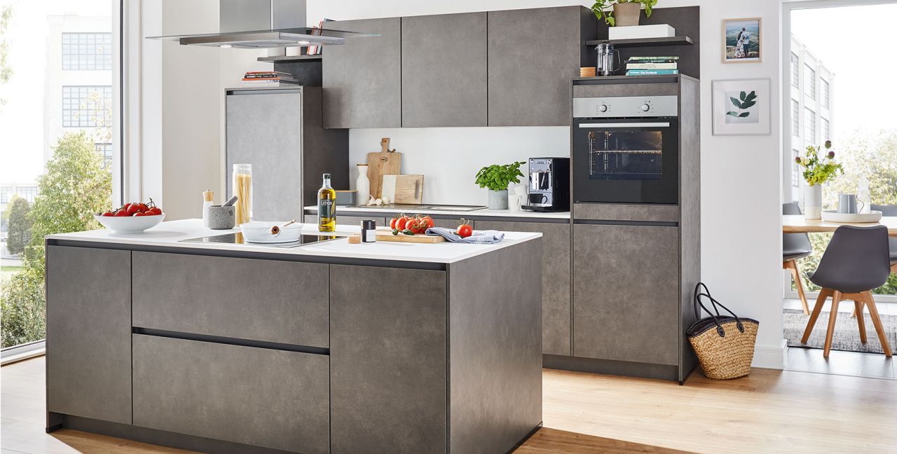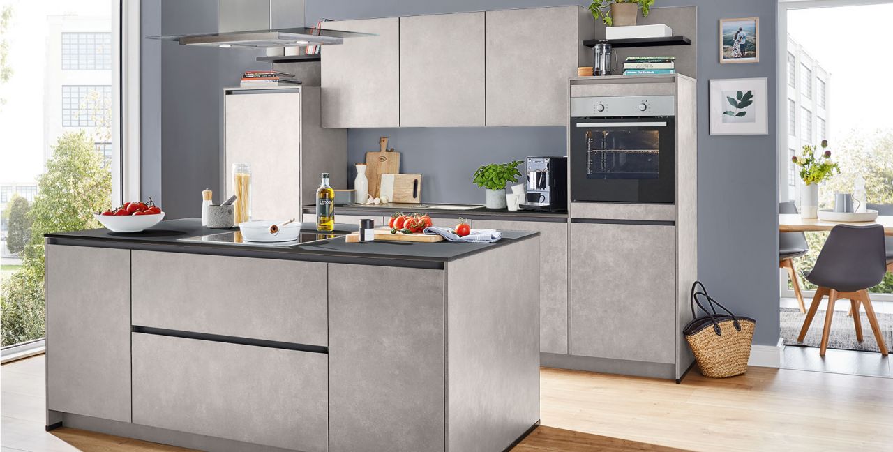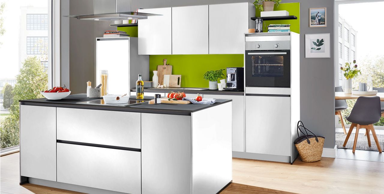 Inklusive Einbaubackofen Edelstahl Laurus LEB3 Energieeffizienzklasse A, Glaskeramik Kochfeld Laurus LCA60, Inselesse Edelstahl / Glas Elica TRIBE INSEL-A Energieeffizienzklasse A, Kühlschrank Laurus LKG88F Energieeffizienzklasse F, Geschirrspüler vollintegriert Laurus LSV60-4 Energieeffizienzklasse E, Einbauspüle Edelstahl Rodi Okio Line 85 Deep, XL-Schränken, Unterschrank mit Großraumauszügen, Wandborden.